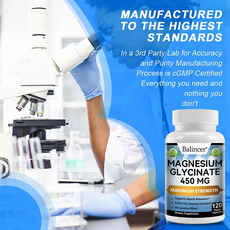 Magnesium Glycinate Supplement 450mg, Helps with Muscle, Nerve Health, Nutritional Absorption and Sleep Quality