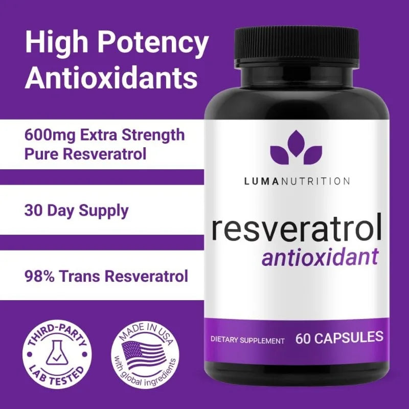 Enhance your health with our high-purity, value-packed Resveratrol capsules. Each bottle contains 98% trans-resveratrol, delivering a powerful 600 mg dose per capsule—outperforming competitors that offer only 500 mg. Experience the unmatched antioxidant support and brain health benefits of raw, concentrated resveratrol.