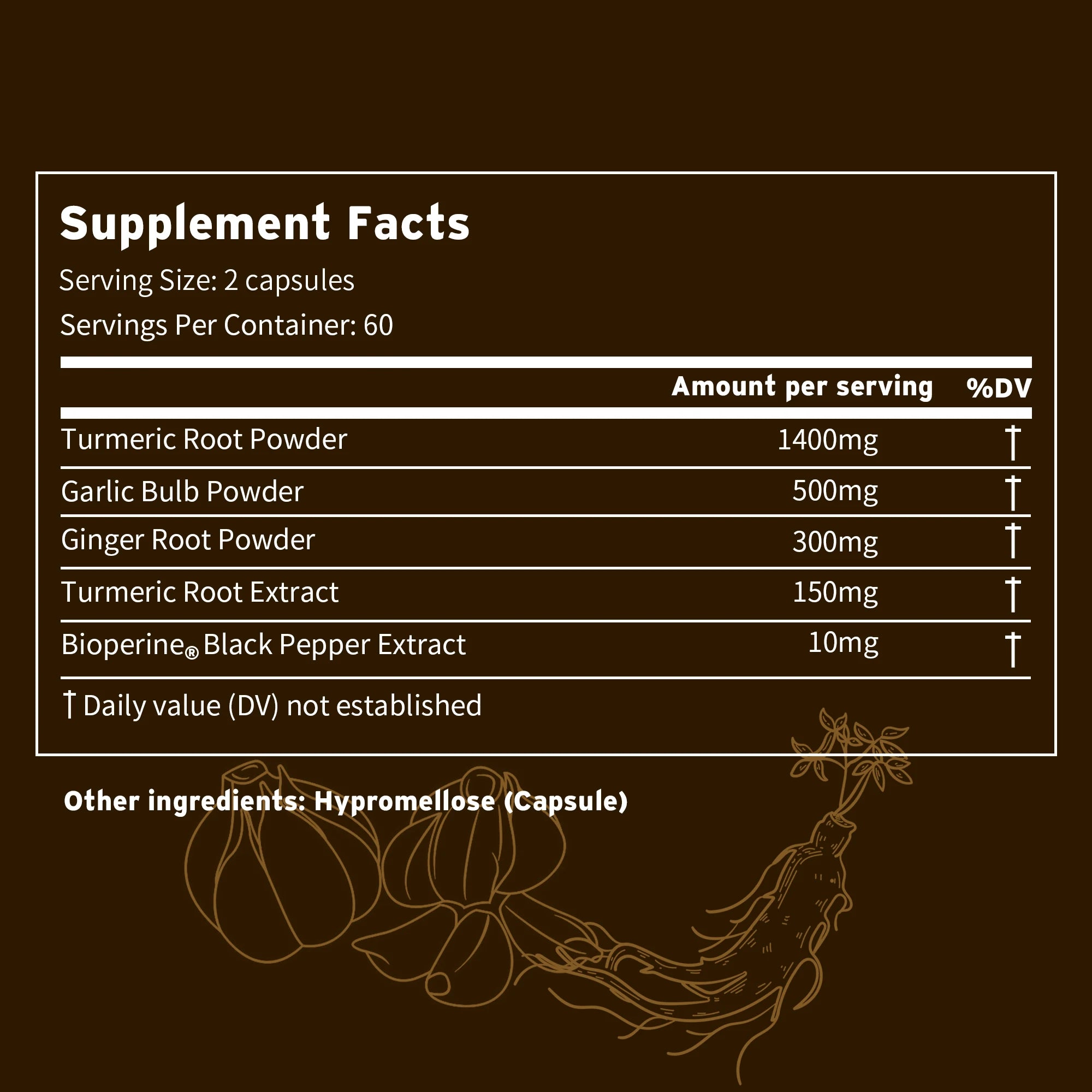 Ingredients: Turmeric Root Powder, Garlic Bulb Powder